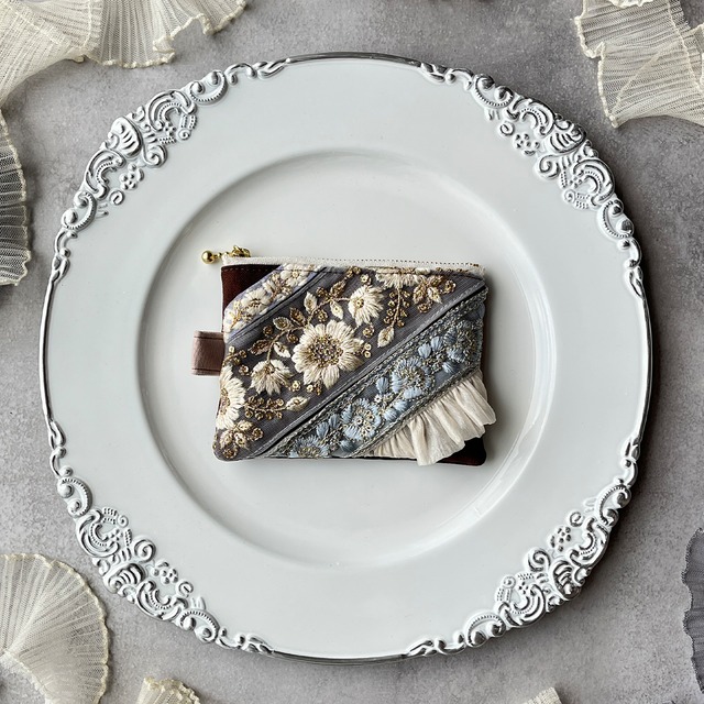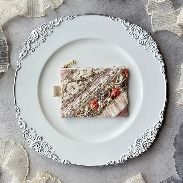 主役になるインド刺繍リボンのフラットポーチ