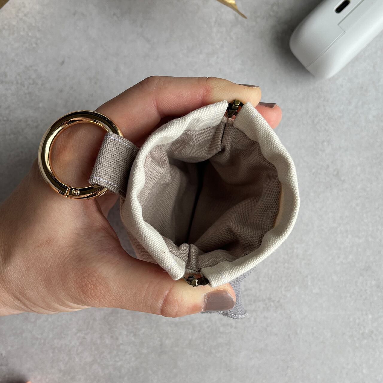 イヤモニやスマートキーなど何度も出し入れするものをバッグにぶら下げていただくと便利です。