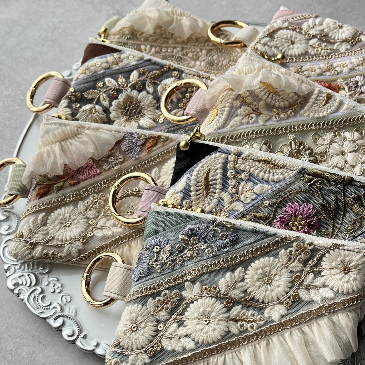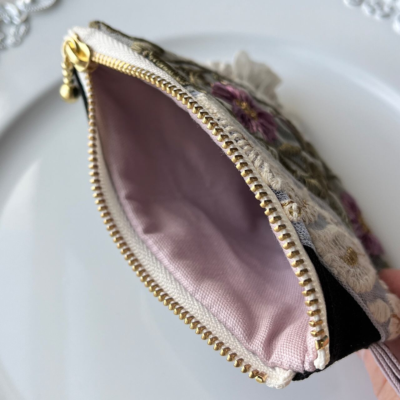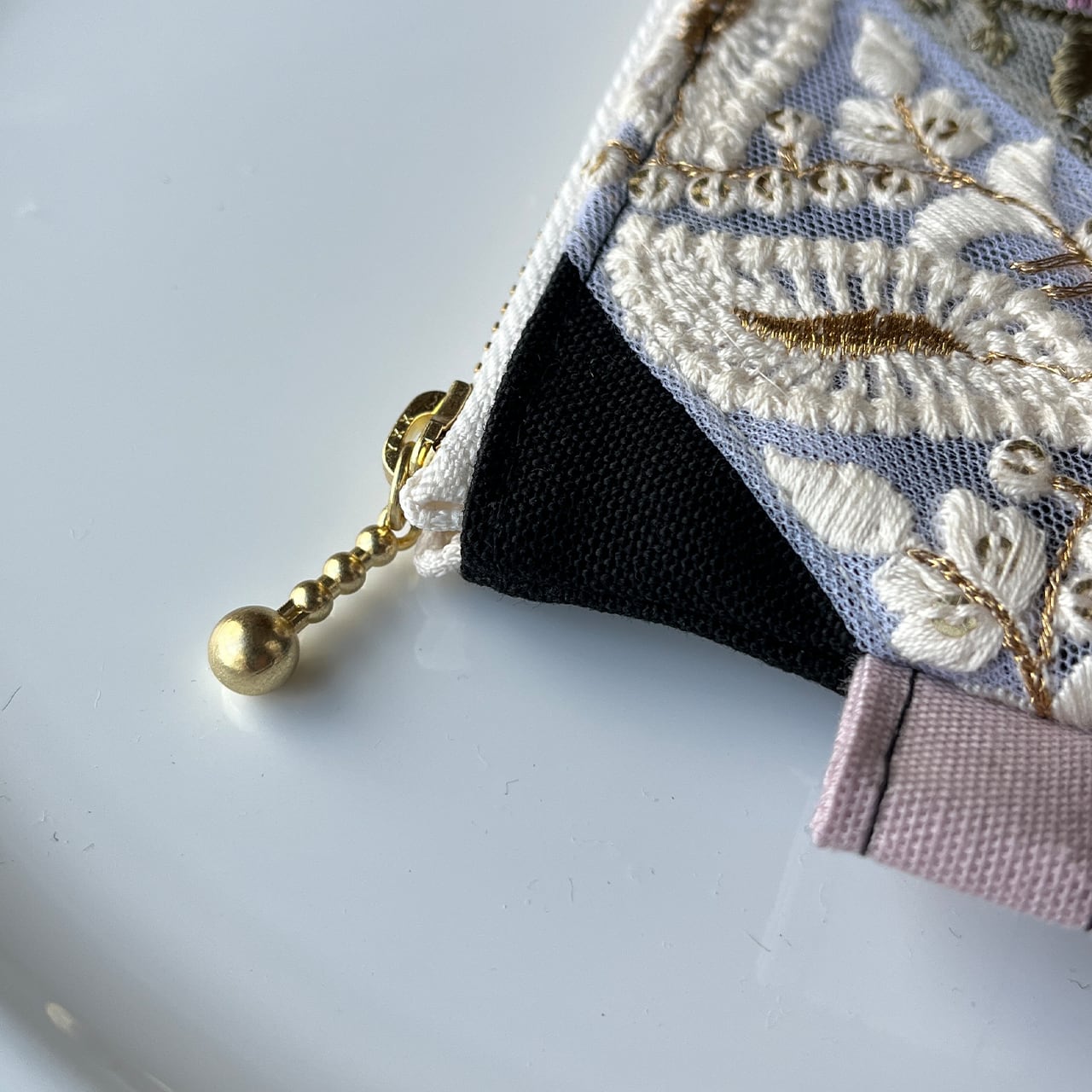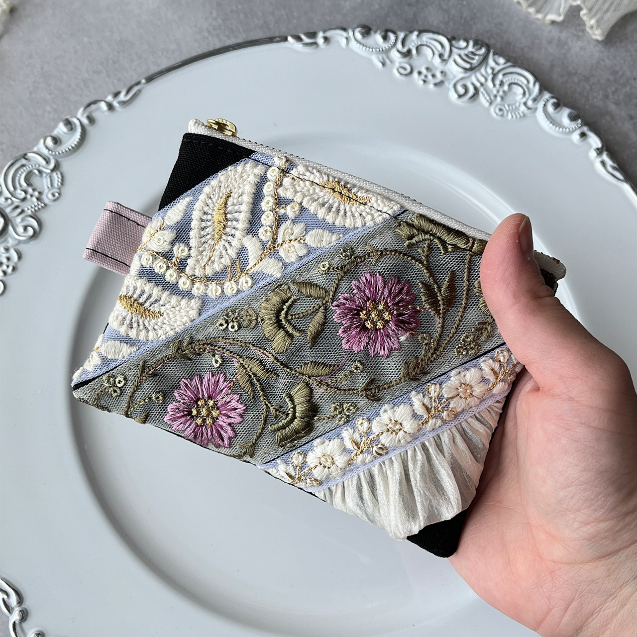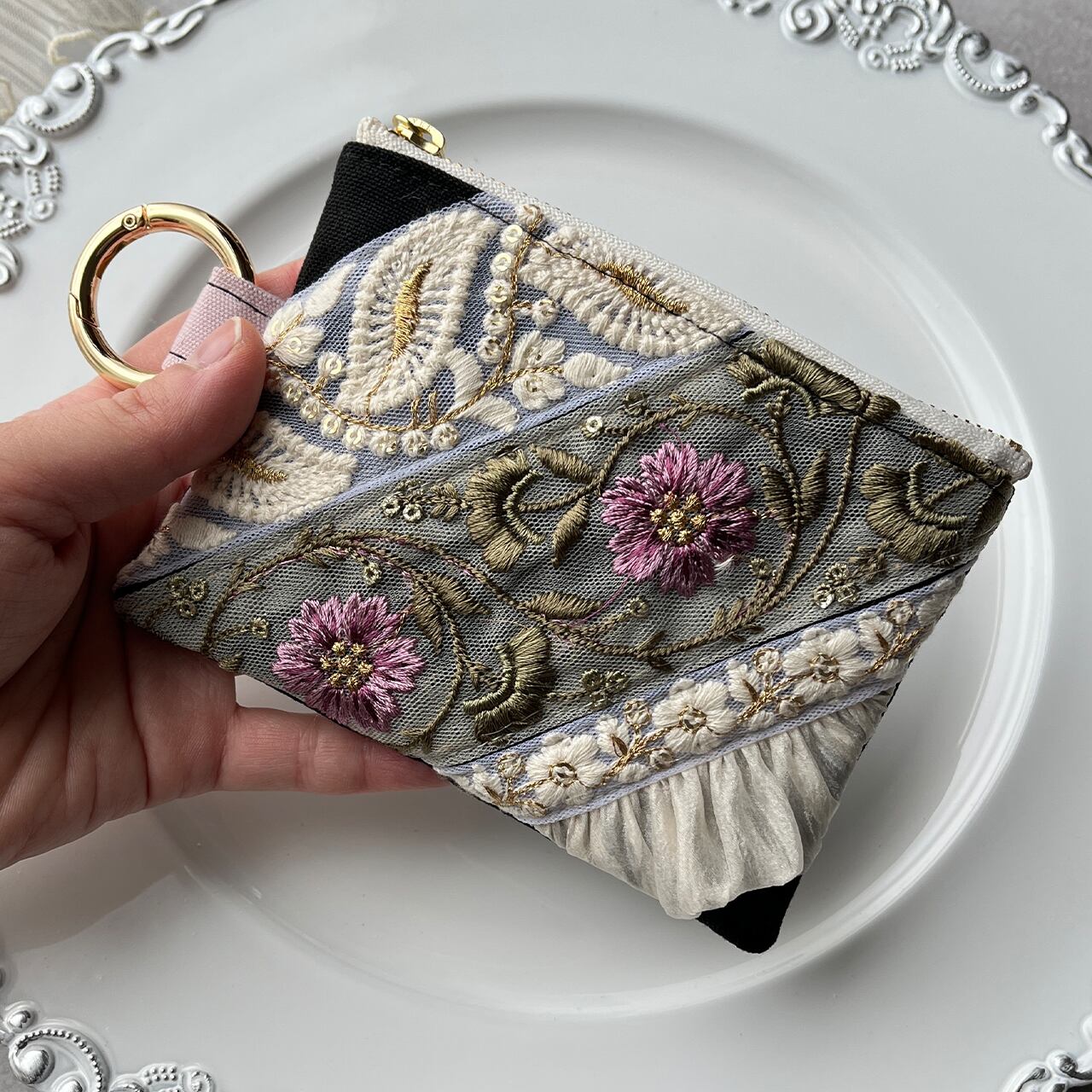 主役になるインド刺繍リボンのフラットポーチ