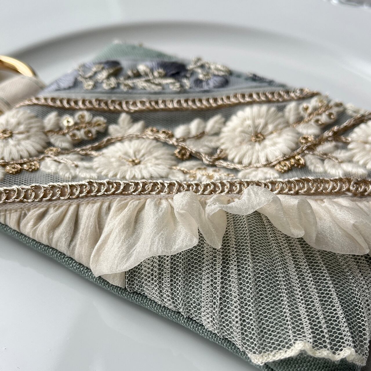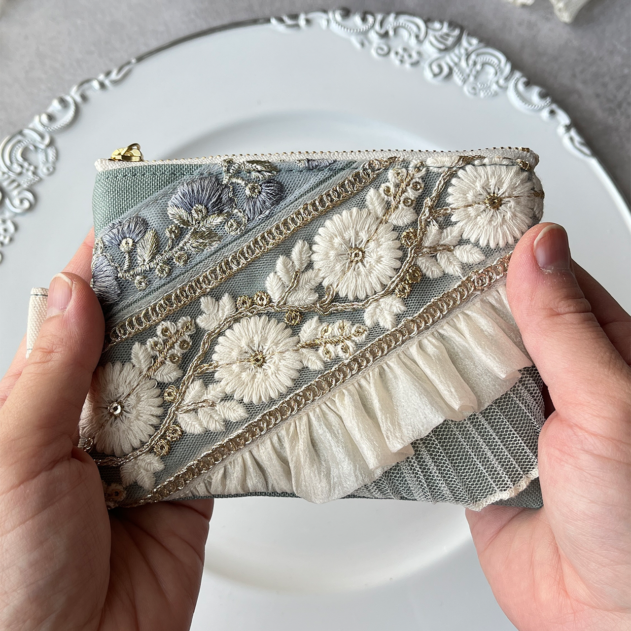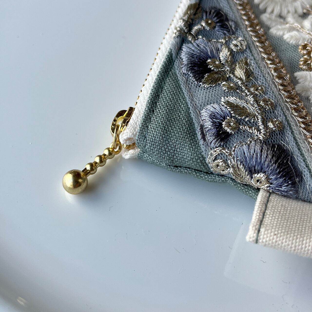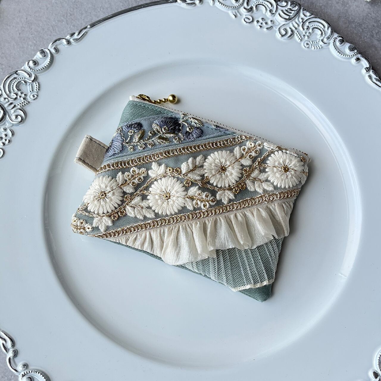 主役になるインド刺繍リボンのフラットポーチ