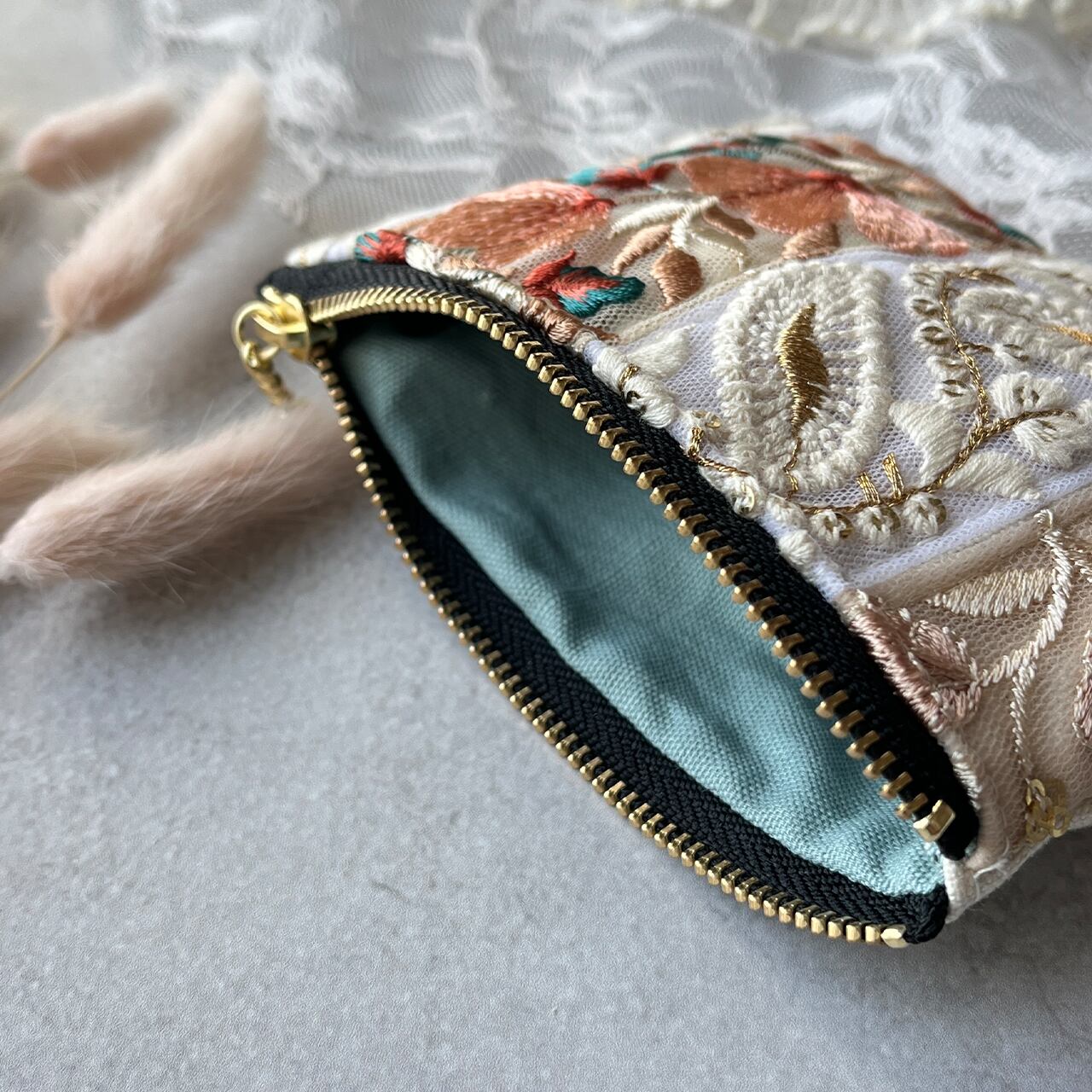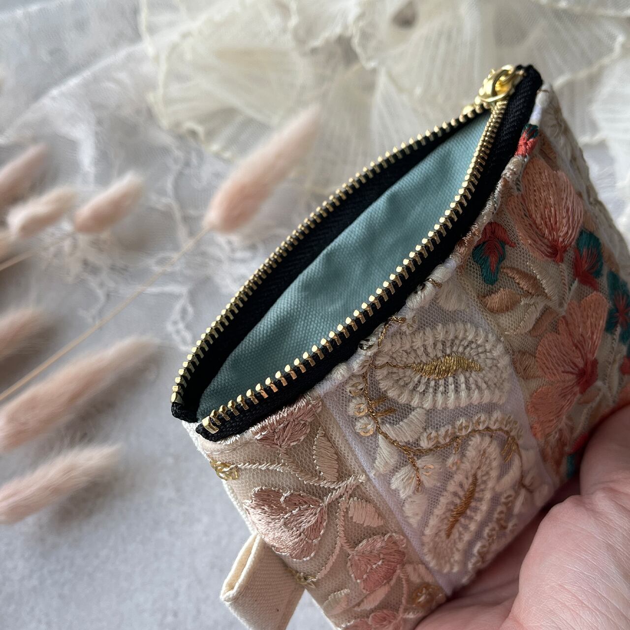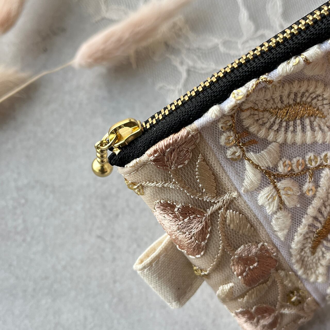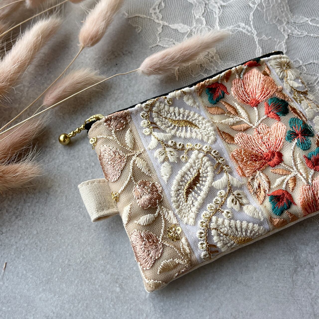インド刺繍リボンの主役になるポーチ!