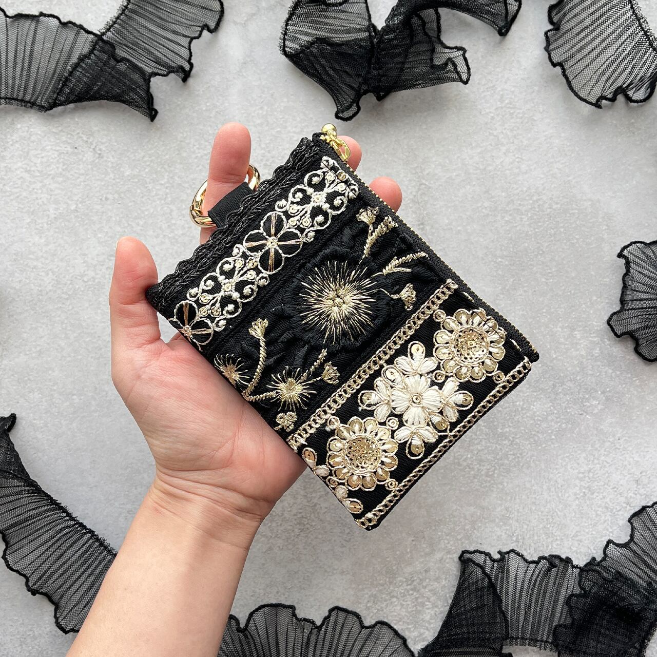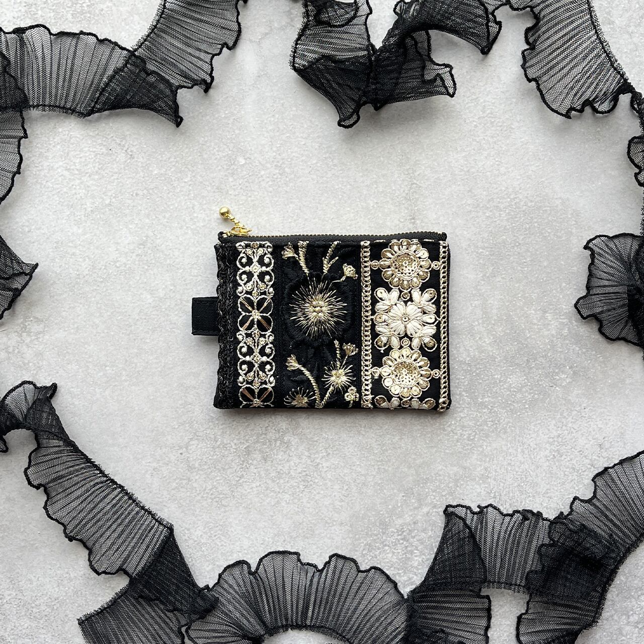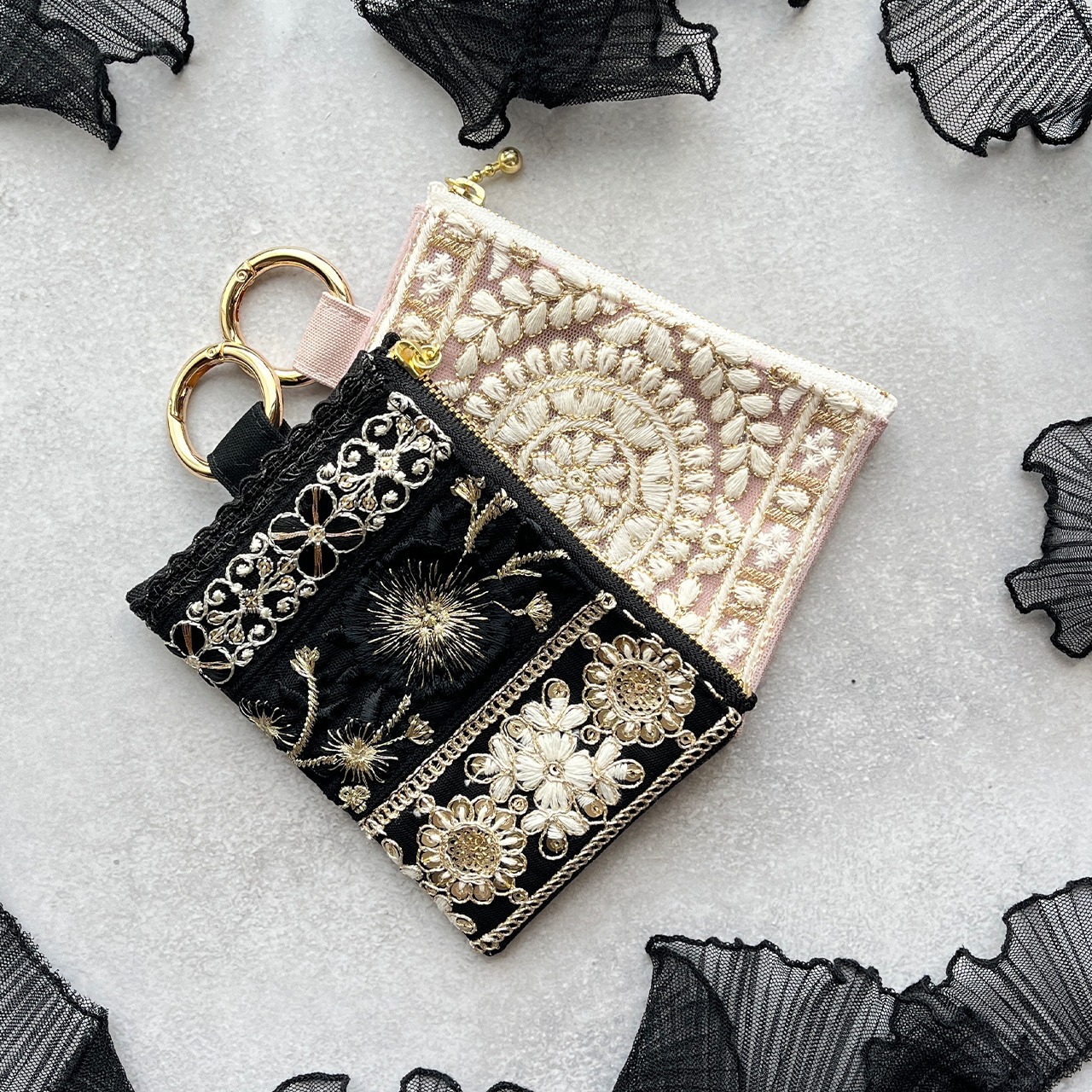こちらはパッチワーク風にインド刺繍リボンを片面にあしらいました。